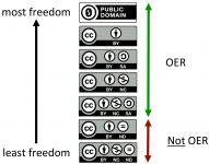 Not all education materials available under a Creative Commons (CC) license are OER. Review this chart that details which CC licenses work well for education resources and which do not.